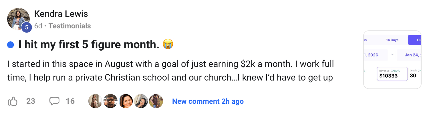 It’s a working system, live support, and a clear steps to launching your first offer.