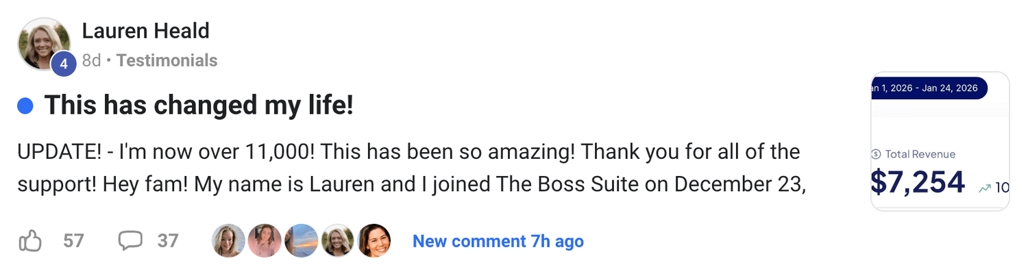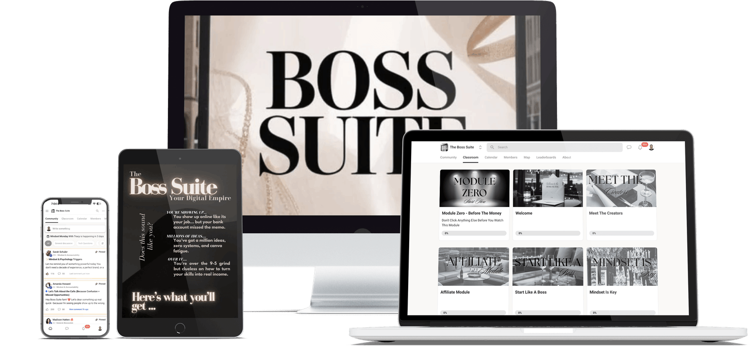 The Boss Suite is a private community built for people who want a framework for building a digital business, without chasing trends or jumping between half-finished strategies.